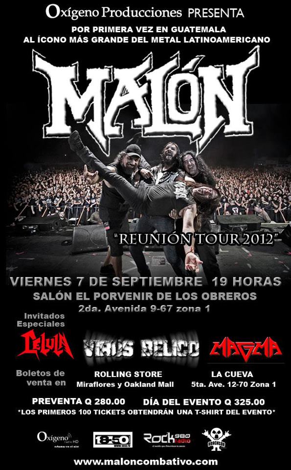 Malon por primera vez en Guatemala, se presentara este 7 de septiembre a las 19 horas en el salon el porvenir de los obreros en la 2da. avenida 9-67 zona 1
